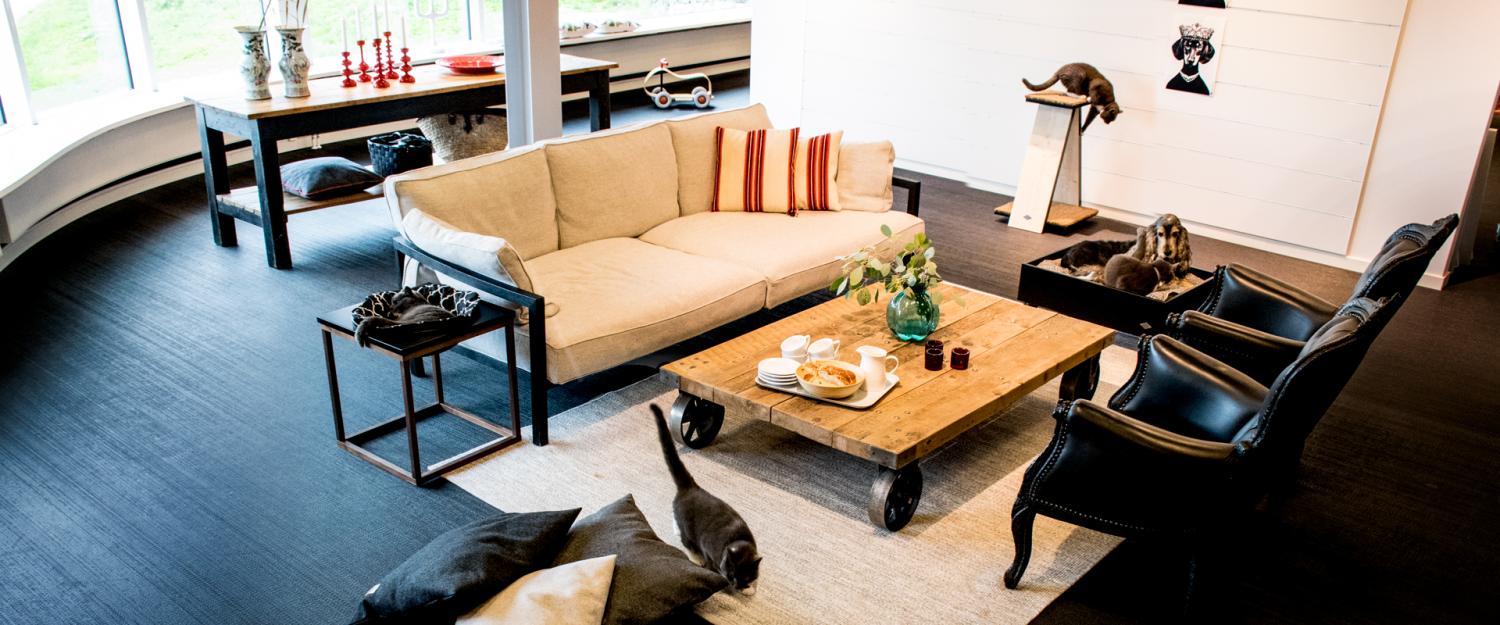 I kollektionen ingår en kattbädd och ett staplingsbart bord som finns i en mängd olika färgkombinationer, ett klätter- och klösträd i svart, grått och vitt och en hundsäng i fem färger med järnhjul i gammaldags industristil.