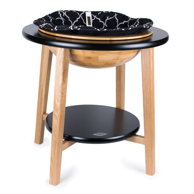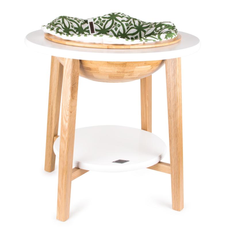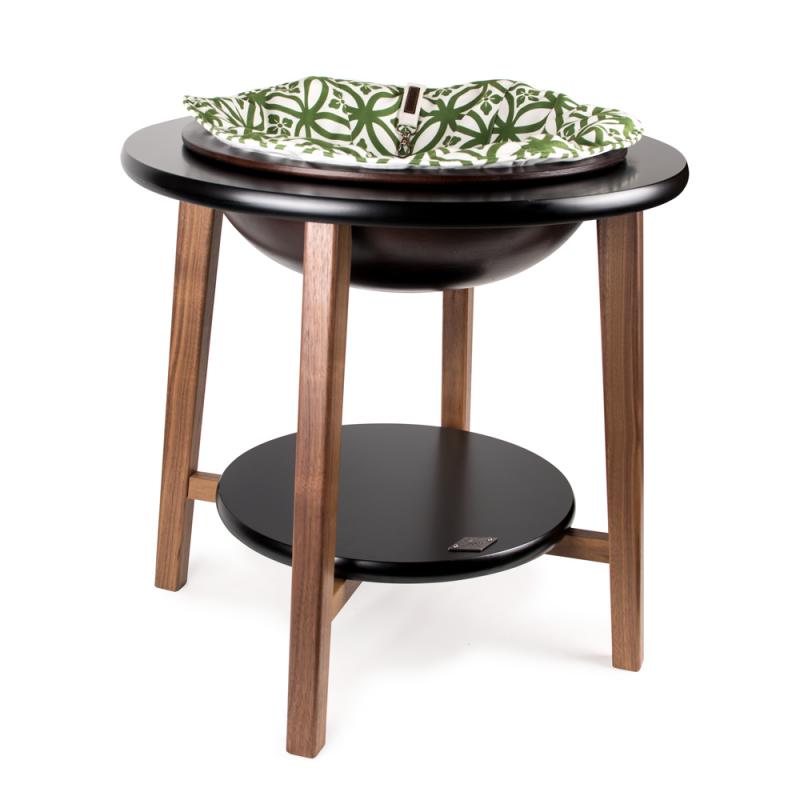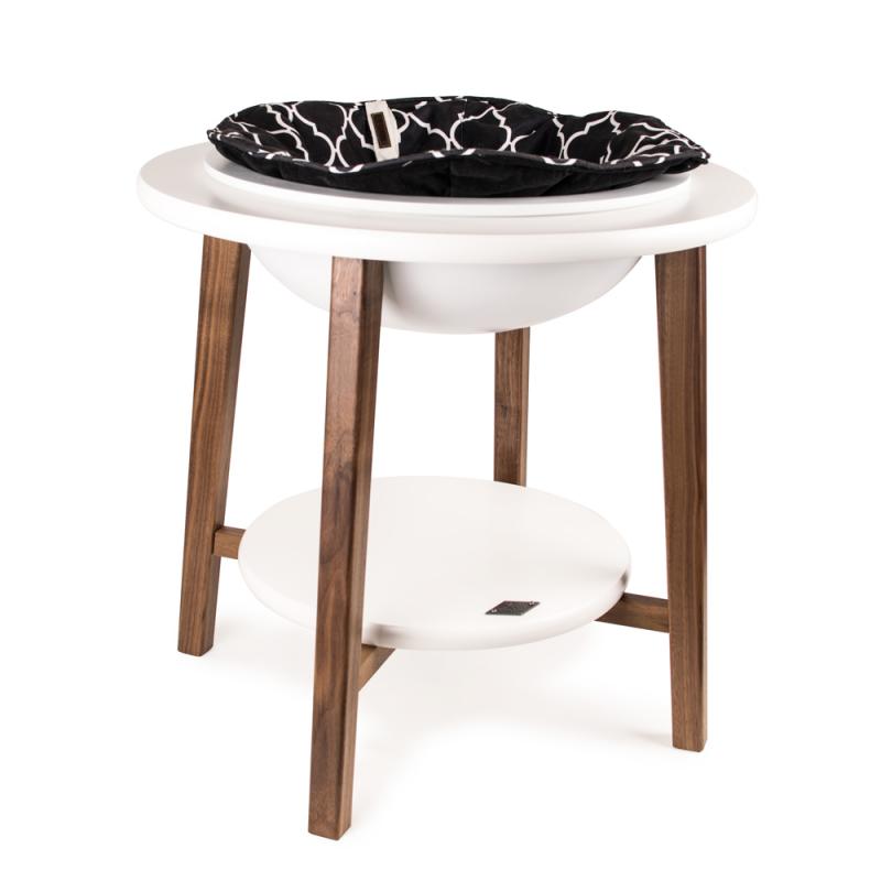 Liden Kattbädd i tidlös skandinavisk design med inspiration från 50- och 60-talet. En svensktillverkad kattbädd i massiv ek eller valnöt. Möbeln ser ut som ett sidebord med rund bordskiva i lackad MDF. Bordsskivan har ett runt hål i mitten för Miwo® Baboo kattbädd. Bordet har ett hyllplan i lackad MDF under bordsskivan. Miwo® Baboo kattbädd och dyna köpes separat. Liden kattbädd finns i ek och valnöt i 3 olika utföranden.