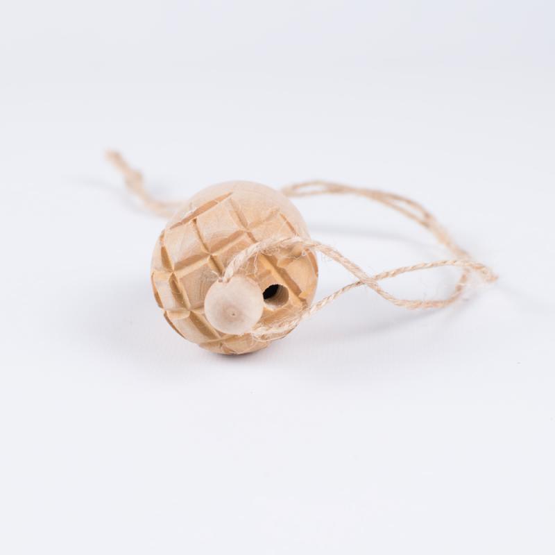 Presentpåsen innehåller 1 Miwo® Eda Ekollon i ekologisk furu med bjällra.